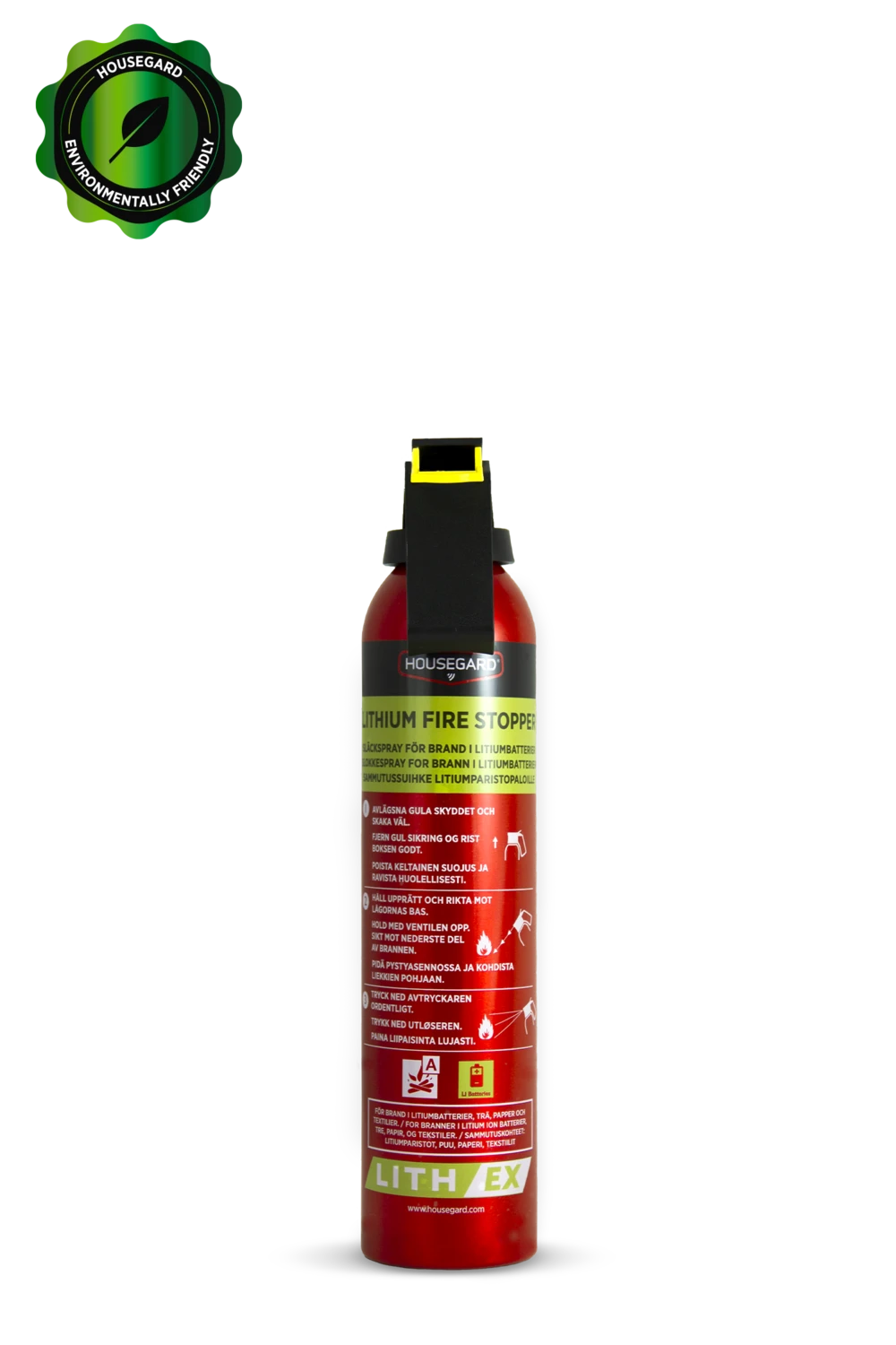 Lith-EX er en unik slukkespray som er spesielt utviklet for å bekjempe litiumionbatteribranner av en begrenset størrelse. Slukkesprayen inneholder slukkemiddelet AVD. Egnet for bruk i hjemmet, hotellrom og kjøretøy.