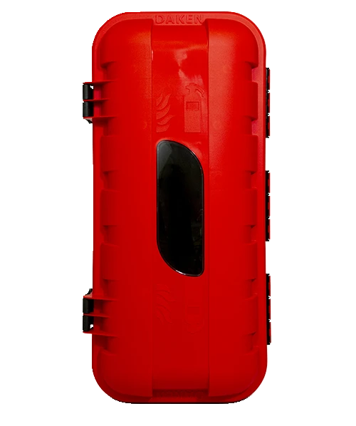 Solid skap med plass til to brannslokkere. Kan monteres både innen- og utendørs og er laget for å tåle aggressive miljøer. Doble håndtak og tetningslist av TPE-gummi, som er svært formbestandig og beskytter brannslokkerne mot fuktighet, støv og forurensing.