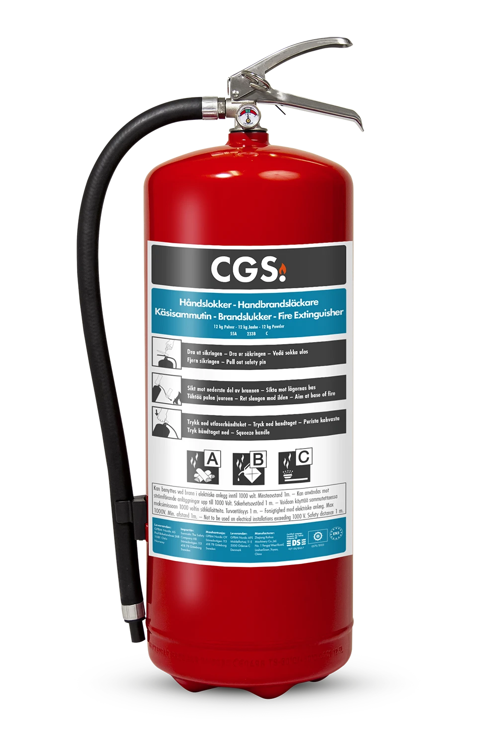 CGS pulverslukker er velegnet ved slukking av klasse A-, B-, og C-branner. Egnet for bruk i boliger, fritidsbåter, campingvogner, busser, lastebiler, skurtreskere, maskiner, varme arbeider m.m.